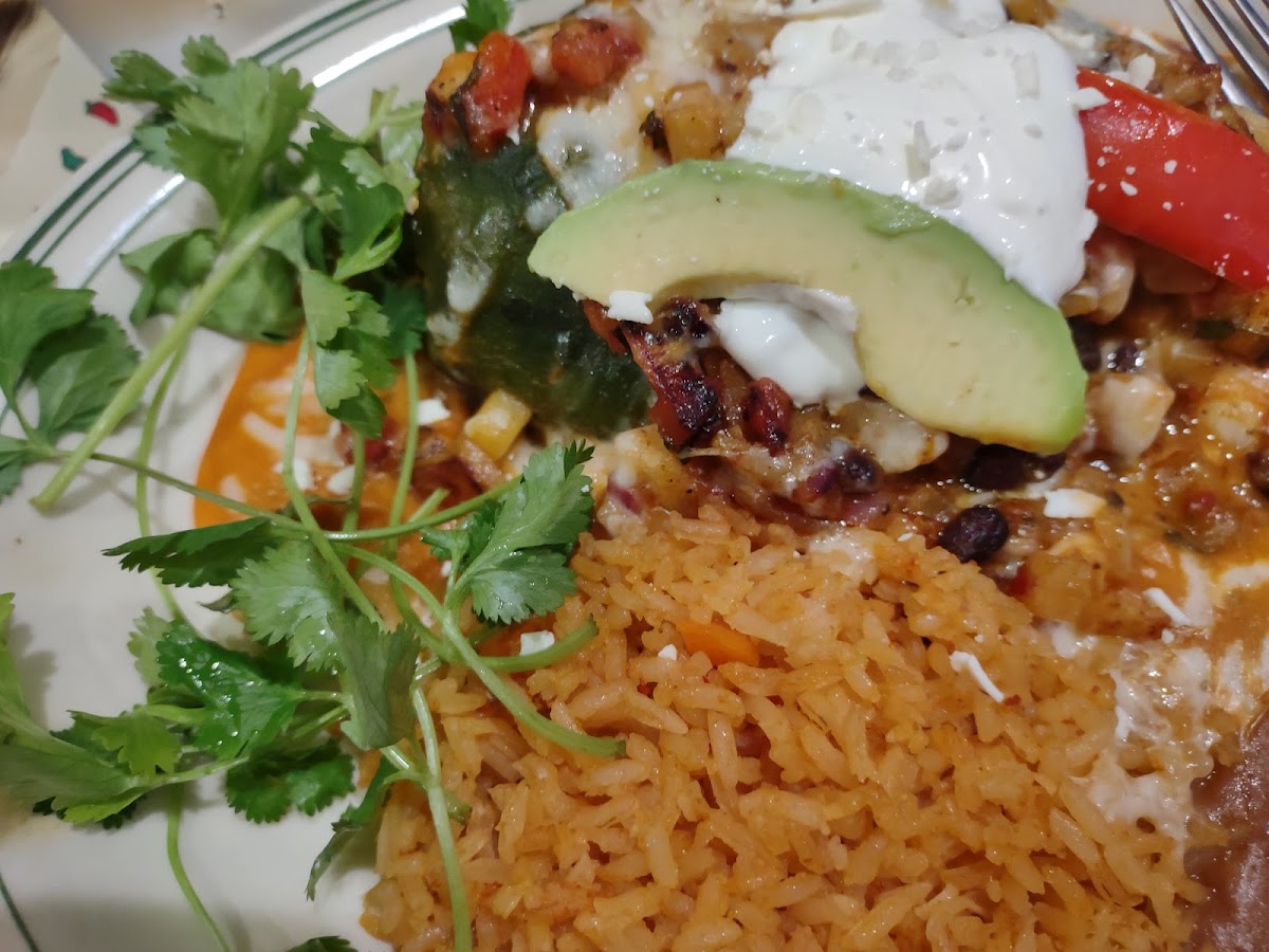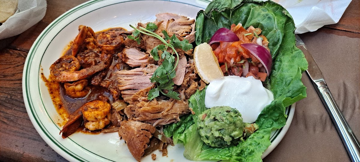 The menu highlights traditional dishes with a twist. Standouts like the Huevos Rancheros and Seafood Relleños reflect hearty, authentic roots, while salads with fajita or pork options bring a fresh, lighter balance. Large portions, such as the veggie burrito or the carne asada Colima style, satisfy bigger appetites without feeling over-serving. Meals here often come paired with three varieties of fresh salsas, complemented by generous sides like hot beans, which add an unexpected layer of warmth to the meal.
